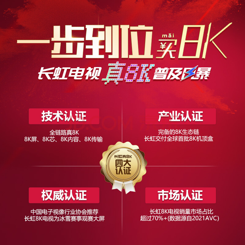 商品相册:长虹 75D8K 75英寸全程8K超高清 5+32GB ADS广角硬屏杜比视界平板LED液晶电视 第