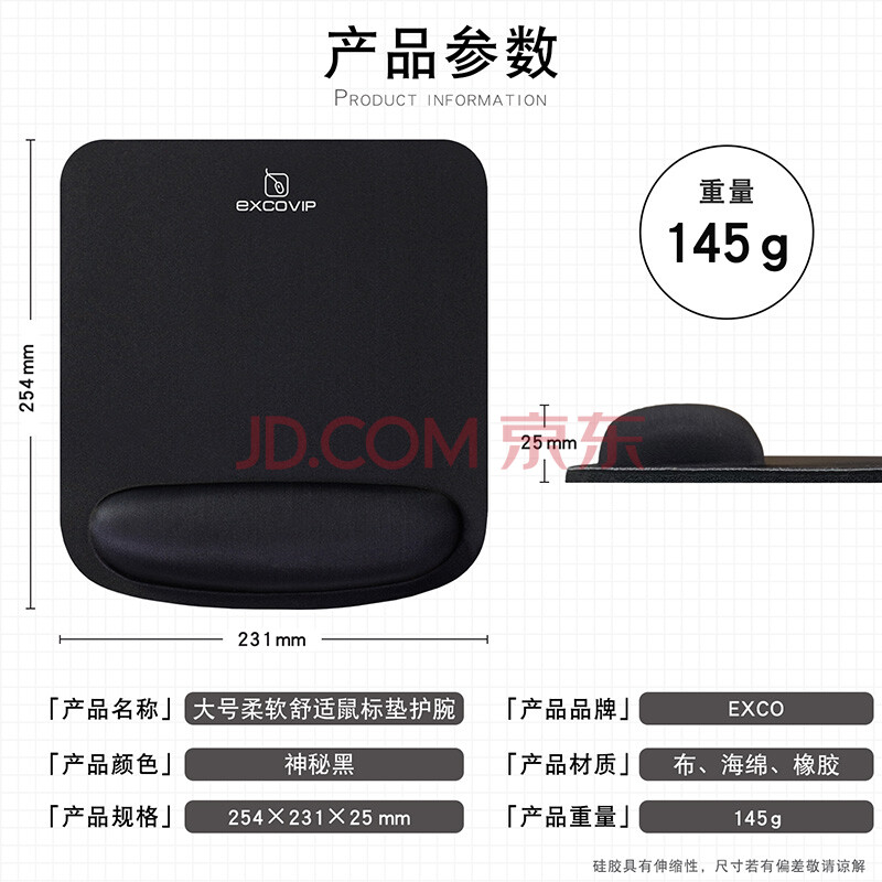 商品相册:宜适酷(EXCO)鼠标垫护腕大号手腕垫电脑办公游戏记忆棉护腕鼠标垫手腕托护腕垫手托男生商务简约纯黑3790第