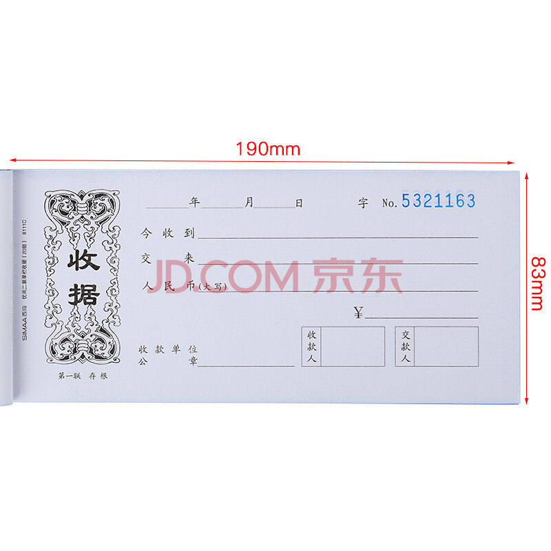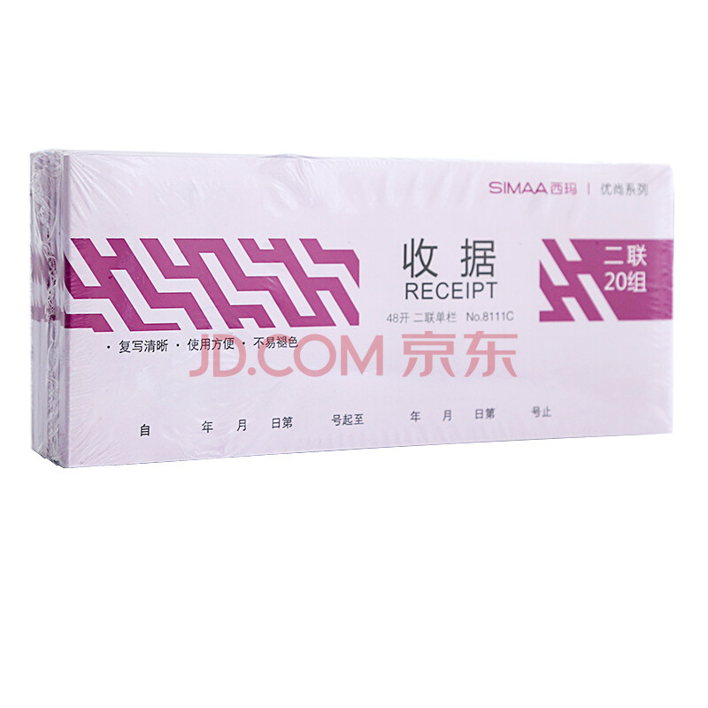 商品相册:【超级爆款】西玛(SIMAA)10本装二联单栏收据8111C 190*83mm 20组/本 带撕裂线无碳复写收货收款单据第