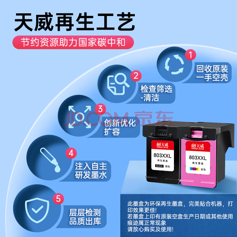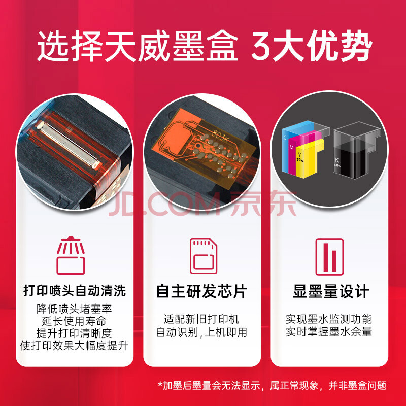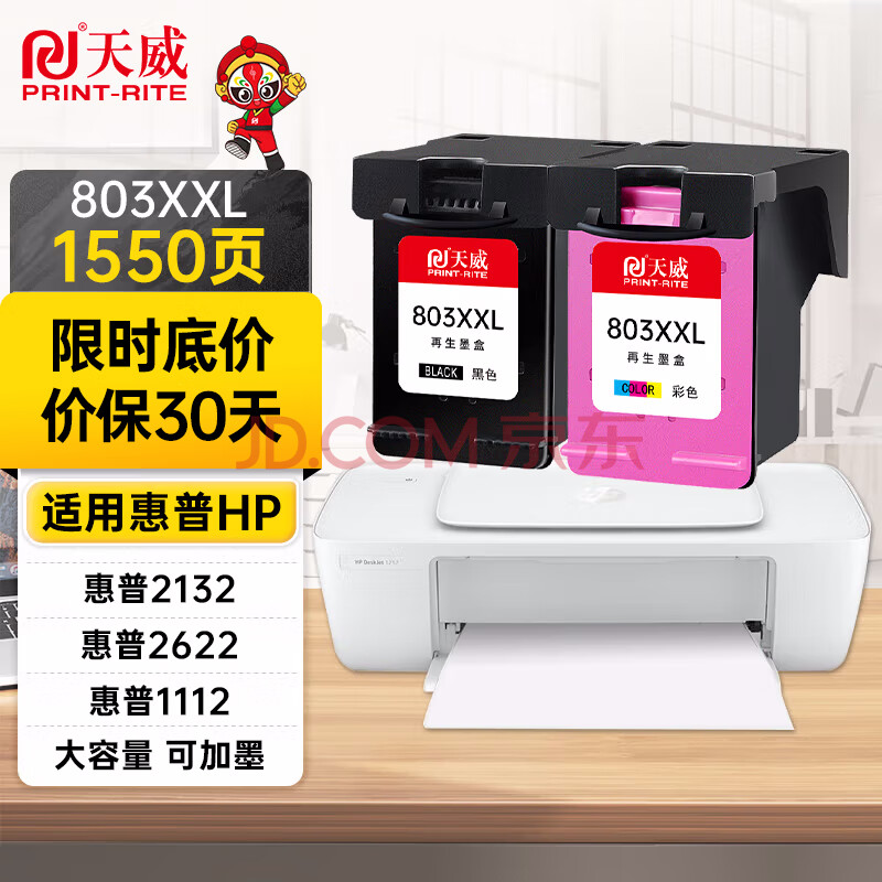 商品相册:天威803XXL墨盒黑色彩色套装适用惠普hp2622 2132 2621 1111 2131 2130 5022 5055 1112打印机墨水墨盒显墨量第