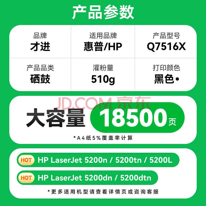 商品相册:才进适用惠普5200硒鼓LaserJet 5200LX q7516a HP16A碳粉5200L 5200DN佳能3500硒鼓3900 crg-309打印机墨盒A3第