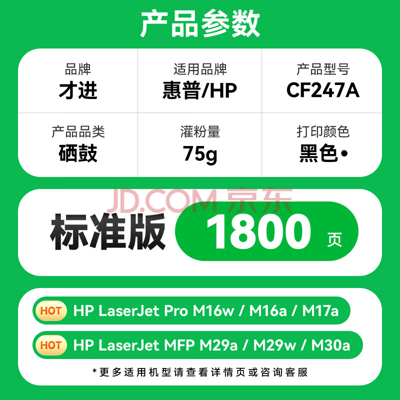 商品相册:才进适用惠普CF247A硒鼓M30w 47A打印机粉盒M30a M17w M17a M29w M29a M16w M16a复印一体机Laserjet Pro MFP第