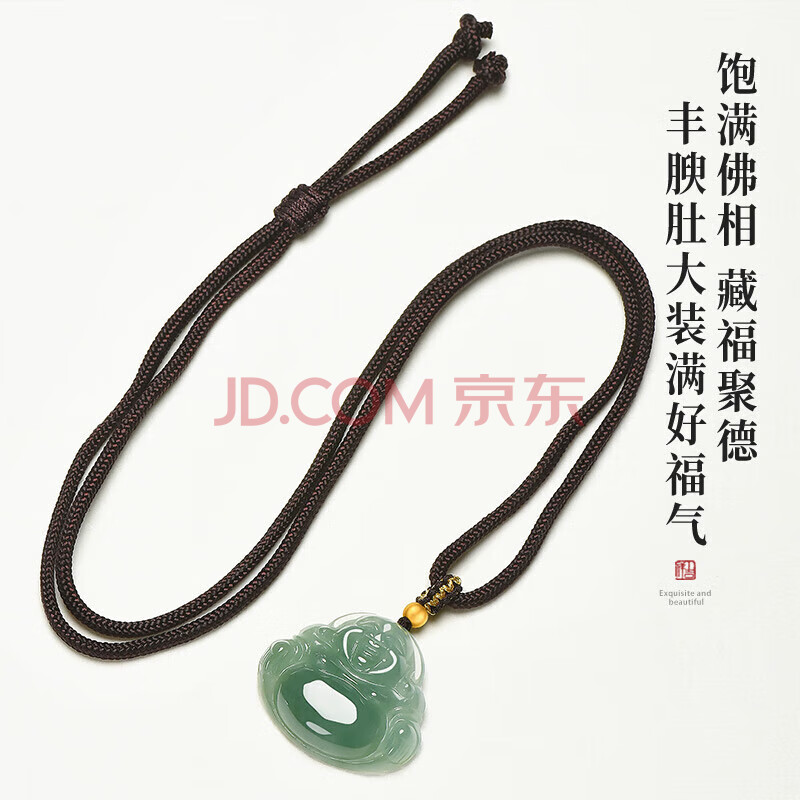 商品相册:凤禧珠宝天然翡翠玉佛吊坠玉坠女士款弥勒佛公玉佩项链送妈妈生日礼物第