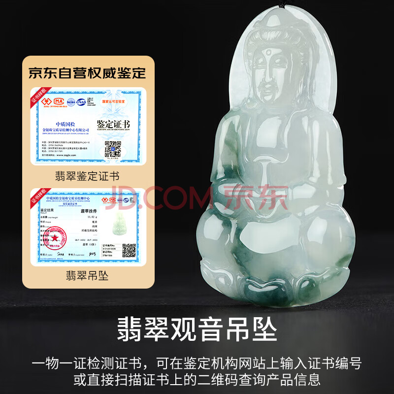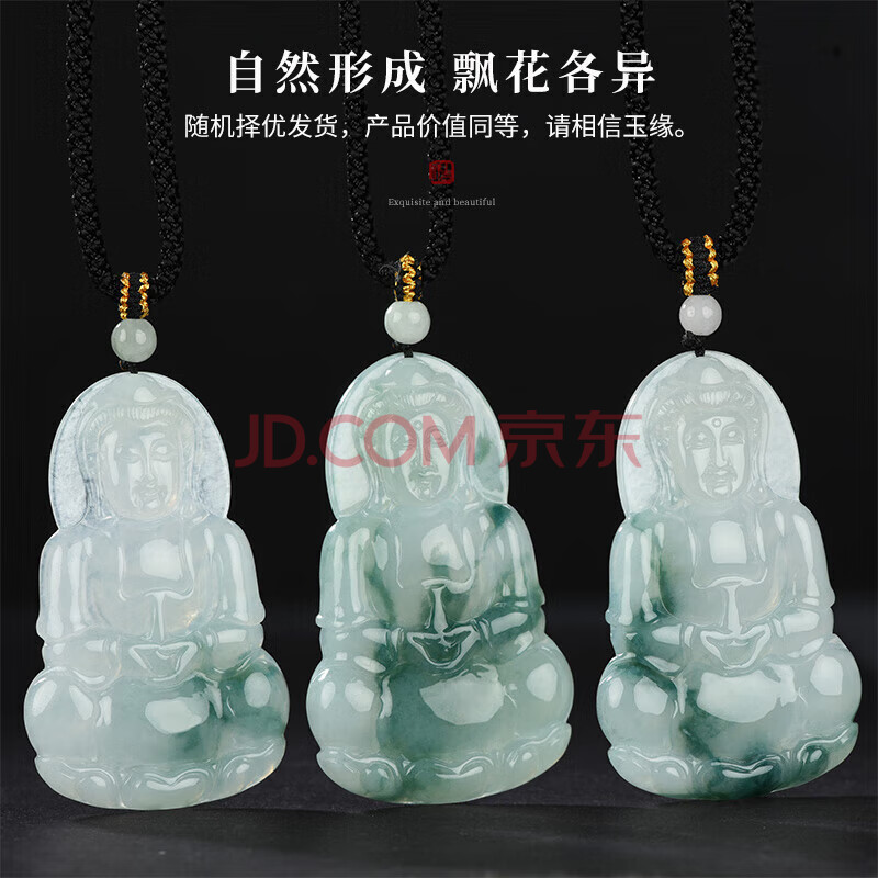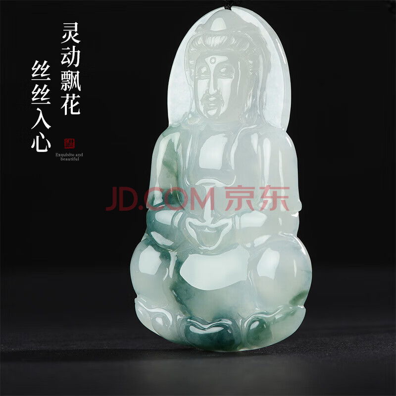 商品相册:凤禧珠宝翡翠玉观音吊坠男士款天然飘花玉观音菩萨玉佩送男友生日礼物第