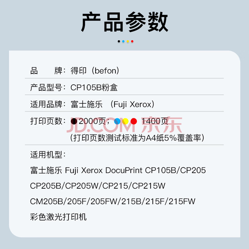 商品相册:得印CP105B粉盒 蓝色 适用施乐CM215fw/CM215f/CM215b/CM205b/CM205f/CP105b/CP215/w/CP205/w打印机硒鼓第