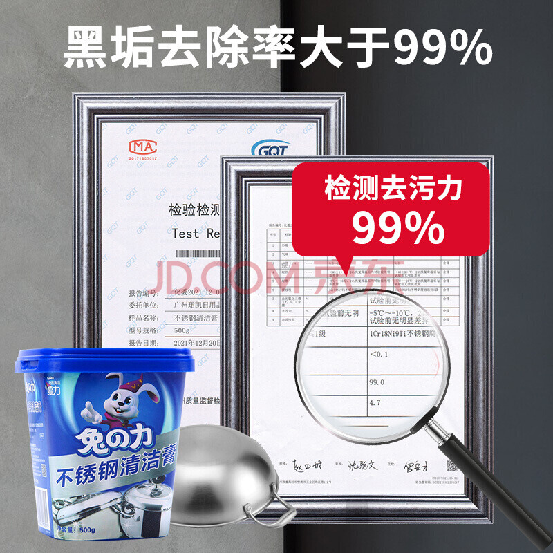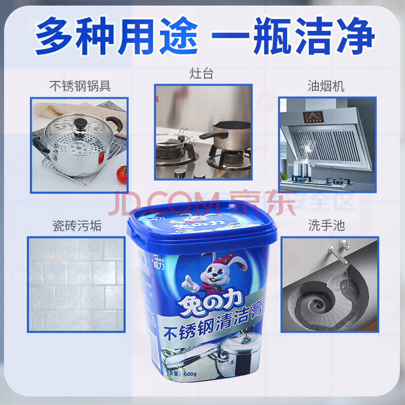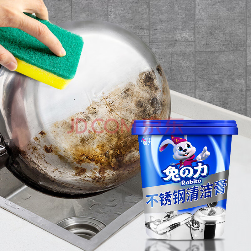 商品相册:兔の力不锈钢清洁膏 厨房清洁剂锅底黑垢去污除锈500g*1罐第