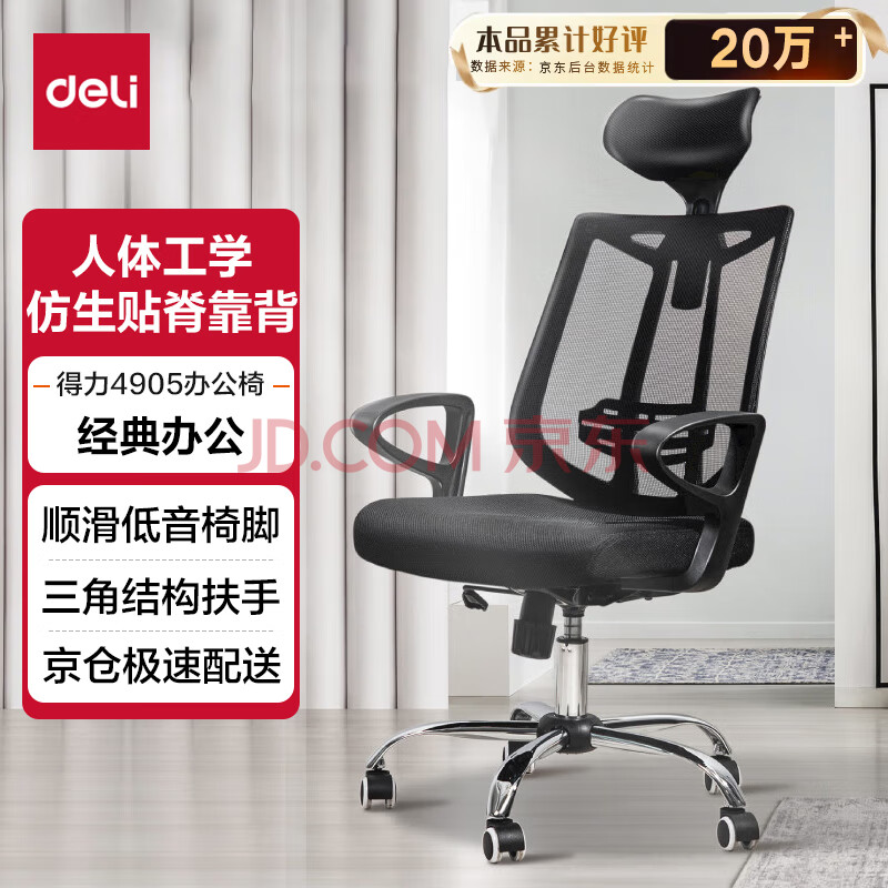 商品相册:得力(deli)4905 人体工学电脑椅 头枕可调办公椅 仿生靠背125°后仰 第