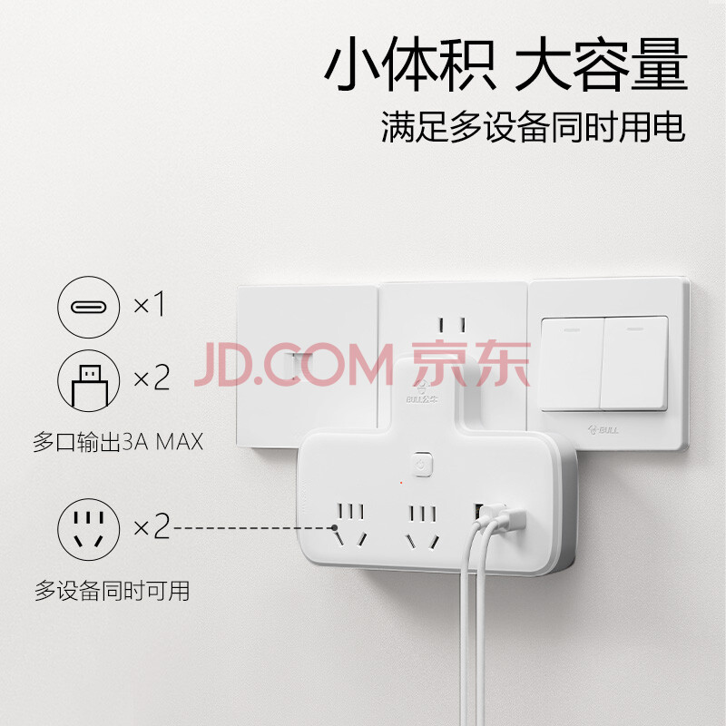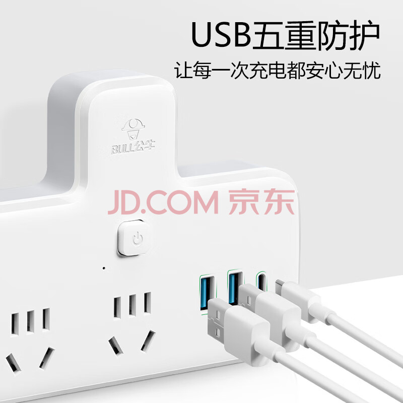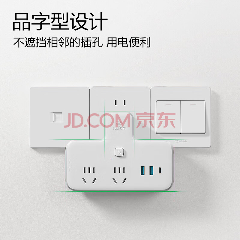 商品相册:公牛(BULL)30W PD苹果快充插座扩展器一转多/一转二插座/转换插头/转换器/插排 2位总控+3USB GN-96021Q30第