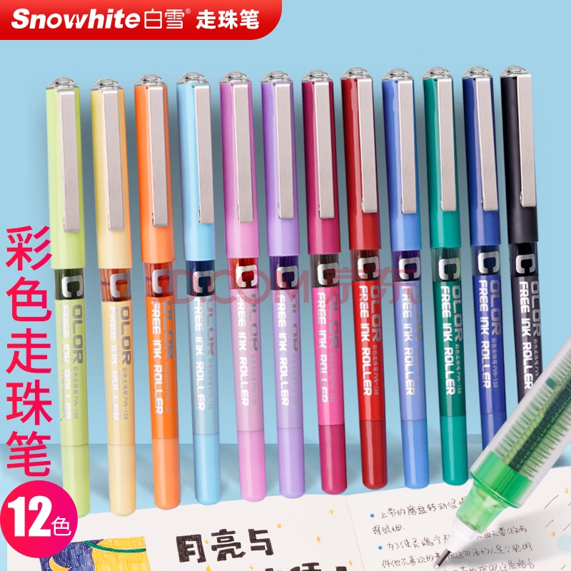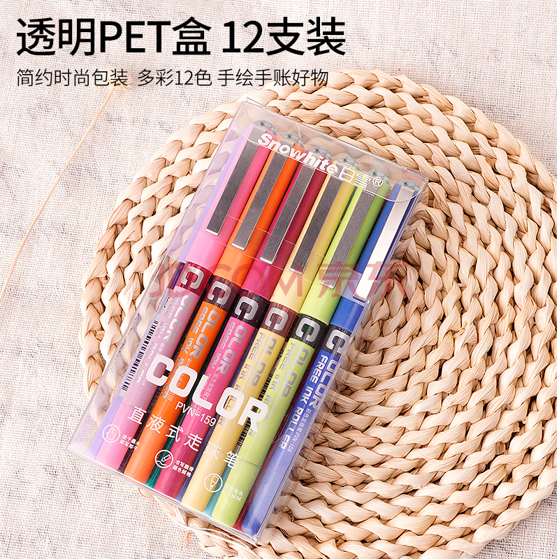商品相册:白雪(snowhite)商务直液笔中性笔走珠笔 黑色0.5mm 速干全针管签字笔水笔12支/盒PVN-159第