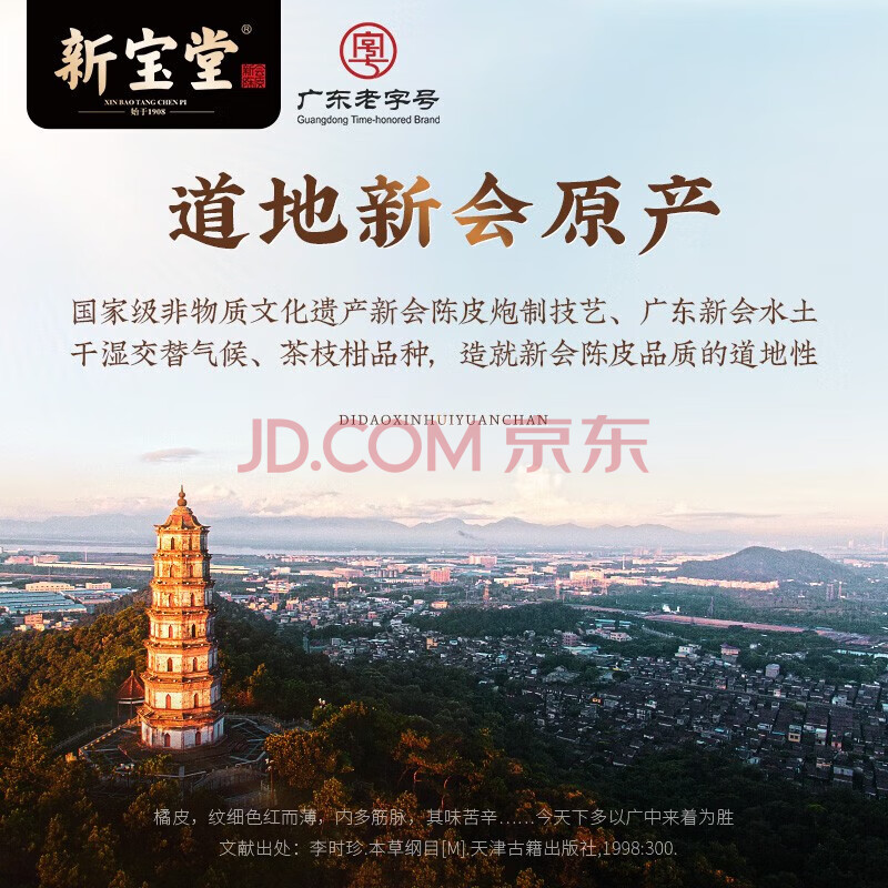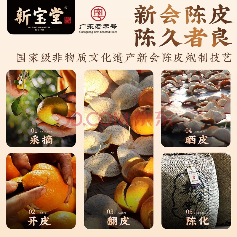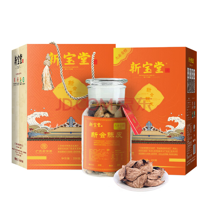 商品相册:新宝堂 15年陈皮大赤金橙 十五年广东新会特产养生茶花草茶 250g玻璃瓶第