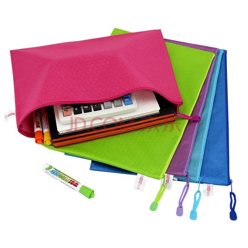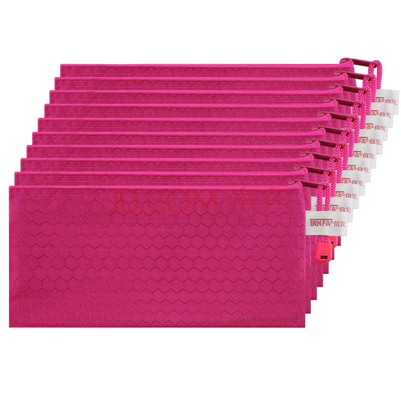 商品相册:信发A6拉链文件袋 10个装 防水足球纹票据袋笔袋手提资料袋公文袋试卷袋学生文具收纳袋 玫红色第