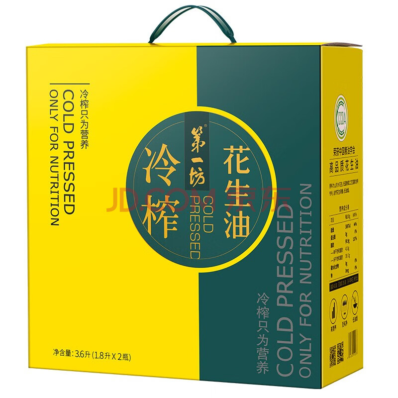 商品相册:第一坊冷榨花生油1.8L*2礼盒装食用油 家庭装 便携提手第1张/共9