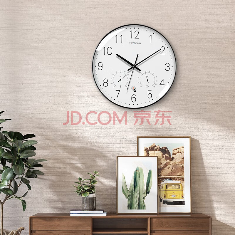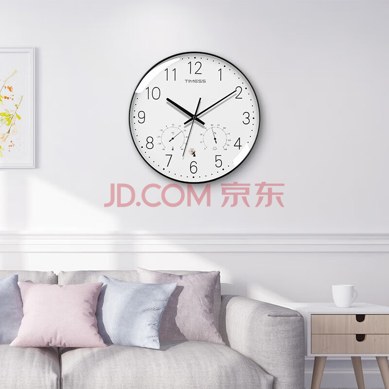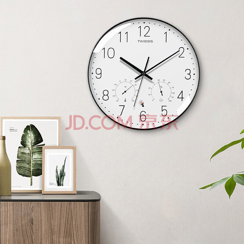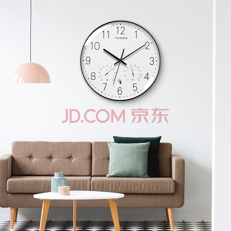 商品相册:Timess挂钟电波钟客厅钟表温湿度计时尚简约石英钟表挂墙卧室时钟36cm第