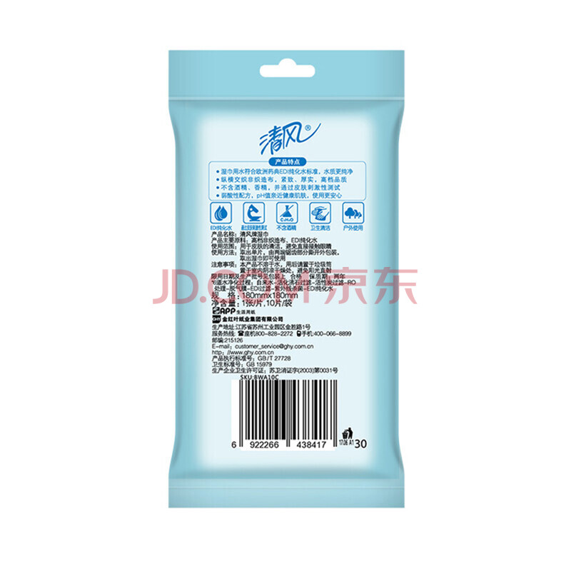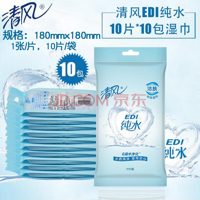 商品相册:清风BWA10C1单片纯水湿巾10片*60包第