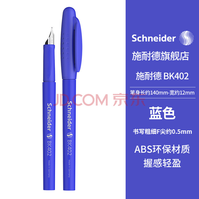 商品相册:施耐德(Schneider)钢笔学生成人直液式练字笔男女三四年级专用签字墨水笔F尖儿童生日礼物开学季用品BK402蓝色第