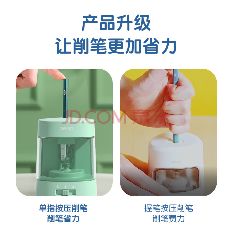 商品相册:得力(deli)电动卷笔刀 省力按压半自动电动削笔机铅笔转笔刀削笔刀削笔器 儿童学生文具考试生日开学礼物绿色第