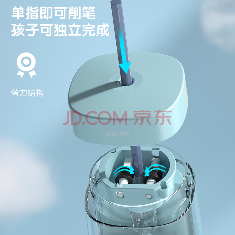 商品相册:得力(deli)电动卷笔刀 省力按压半自动电动削笔机铅笔转笔刀削笔刀削笔器 儿童学生文具考试生日开学礼物蓝色第