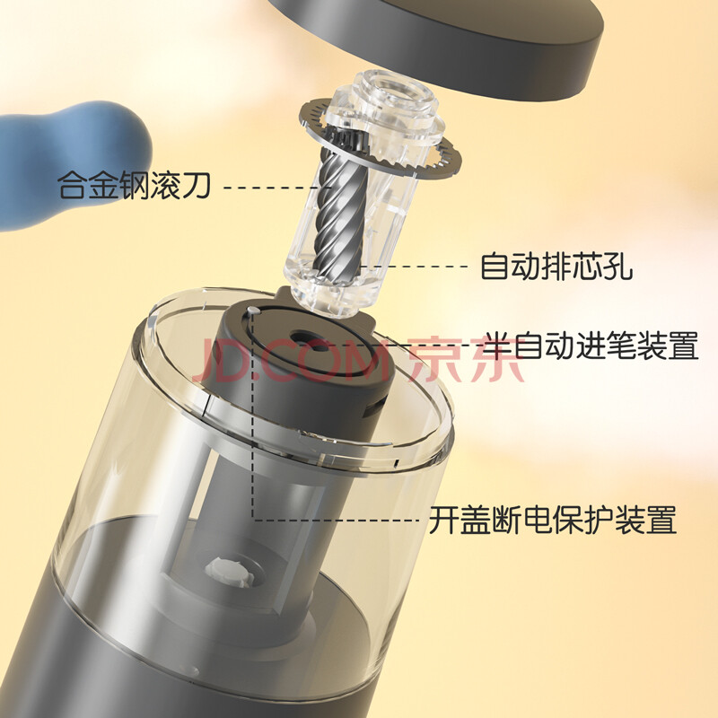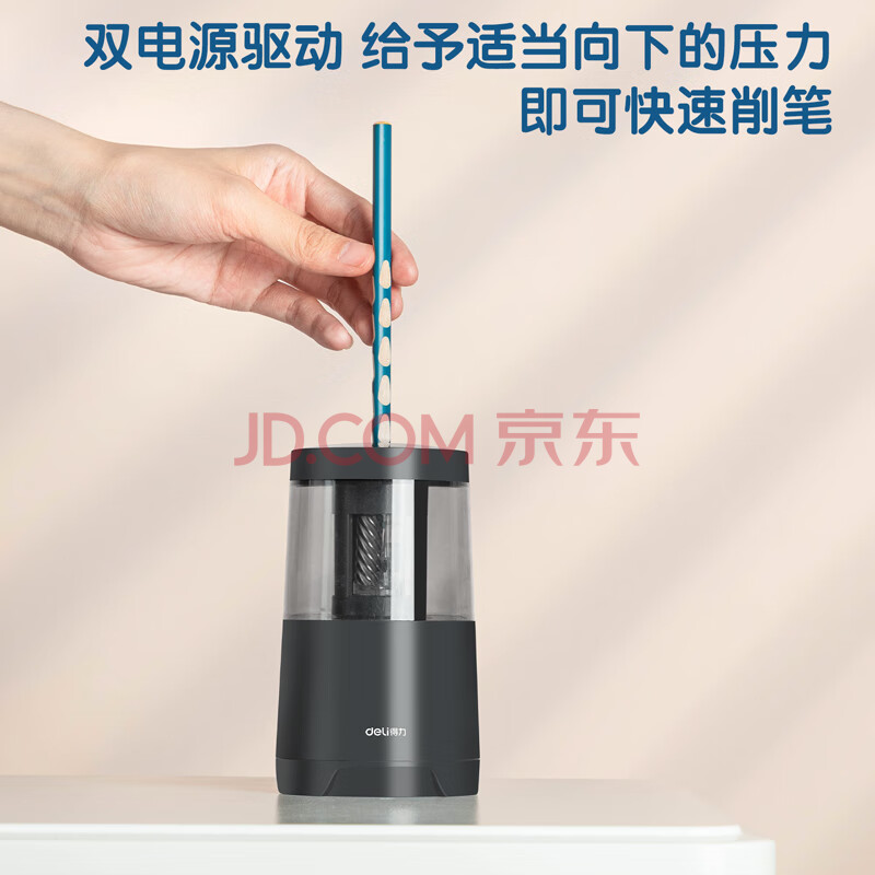 商品相册:得力(deli)电动削笔机 双电源卷笔刀削笔器按压半自动排断芯转笔刀削笔刀 儿童学生文具考试生日开学礼物黑色第
