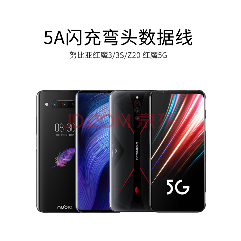 商品相册:trendsetter适用努比亚红魔数据线2米加长pd快充弯头165W/120W红魔7/7s/6/8/pro/5g/5s/3/3s/6r手机充电线第