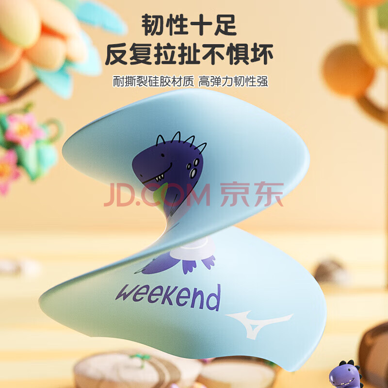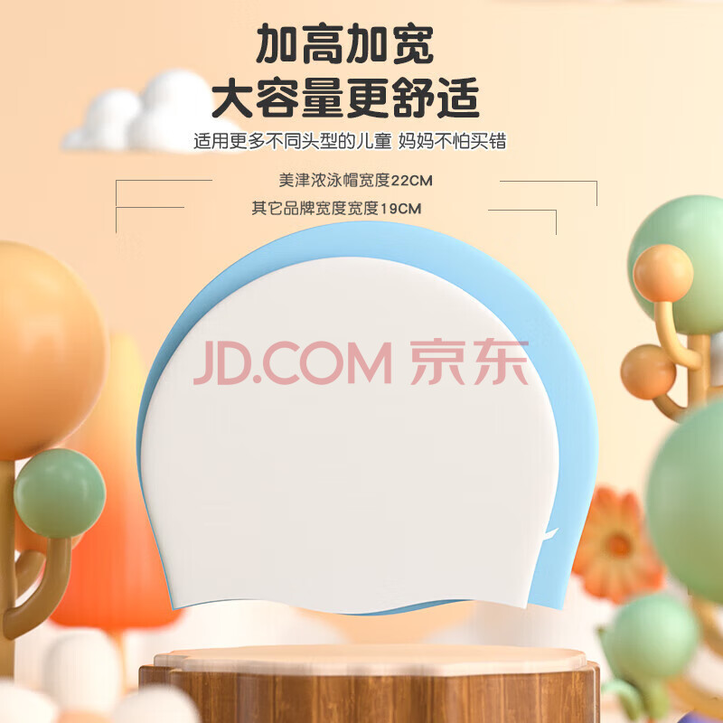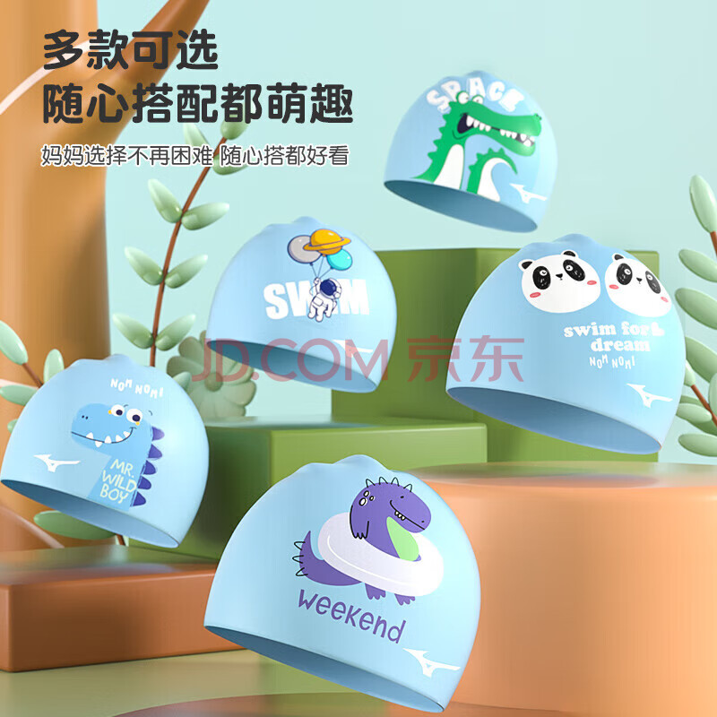 商品相册:美津浓(MIZUNO)儿童泳帽男硅胶不勒头可爱专业防水护耳印花游泳帽N2CW2S04蓝太空第