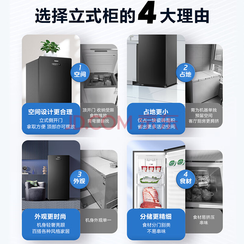 商品相册:海尔(Haier) 226升 -40℃一级能效冷变频家用立式冰柜冷藏冷冻柜冷柜小冰柜家用小型冰箱BD-226WGHEC第