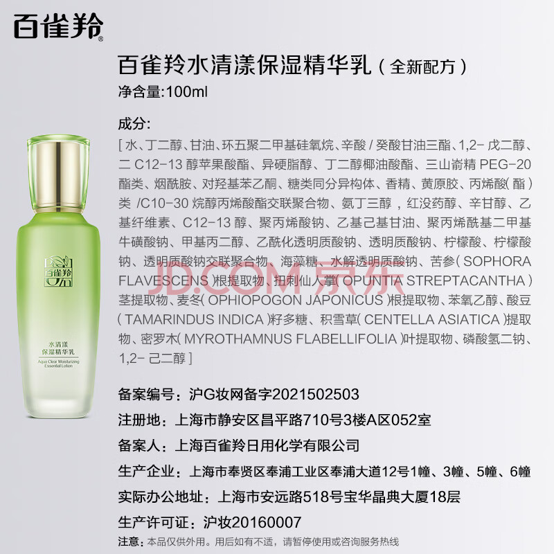 商品相册:百雀羚乳液女 草本水清漾保湿精华乳100ml补水保湿品质国货女神节礼物第