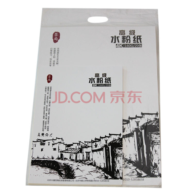 商品相册:芬尚4开水粉纸160g水粉颜料涂画填色加厚美术用纸凹凸纹理学生儿童写生绘画纸4K/20张38.2*53.2cm第