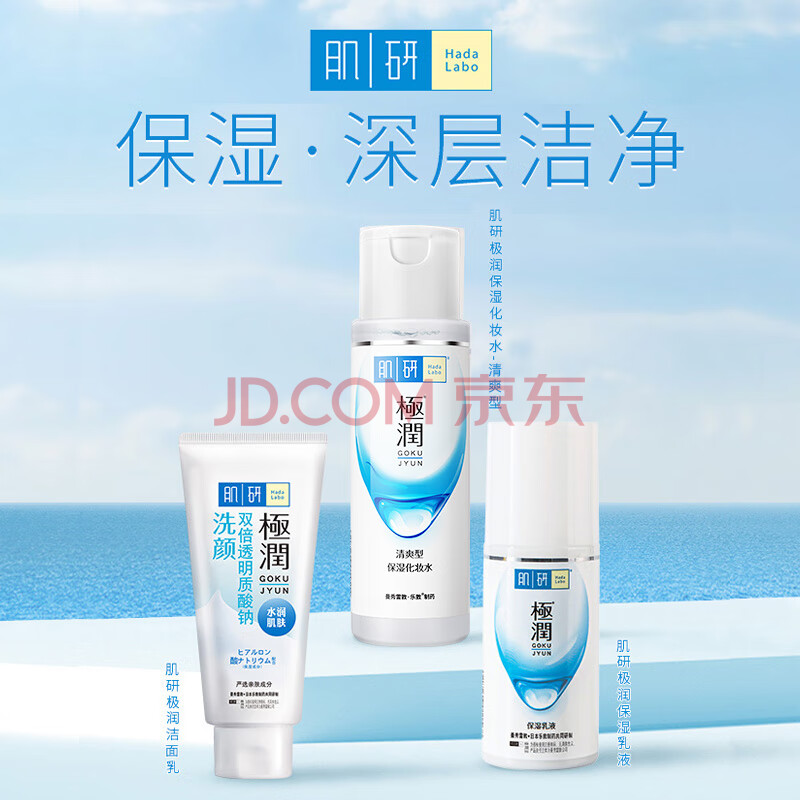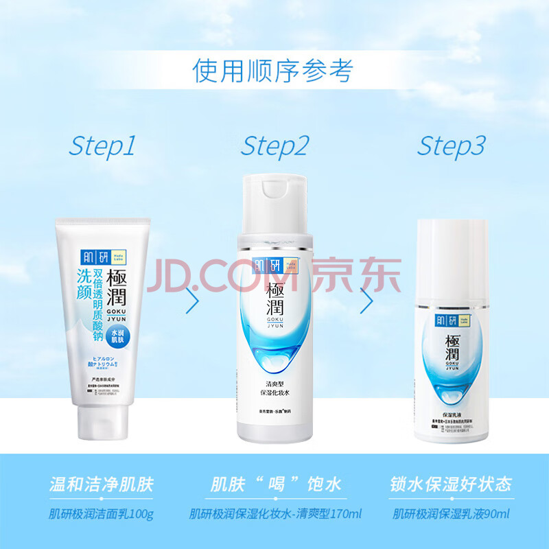 商品相册:肌研极润清爽水乳三步洗面奶爽肤水乳液 玻尿酸补水敏感肌护肤套装第