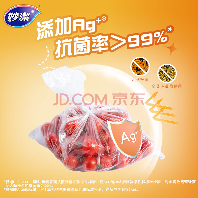商品相册:妙洁抗菌保鲜袋 点断式厨房冰箱保鲜食品袋 银离子抗菌 大号300只第