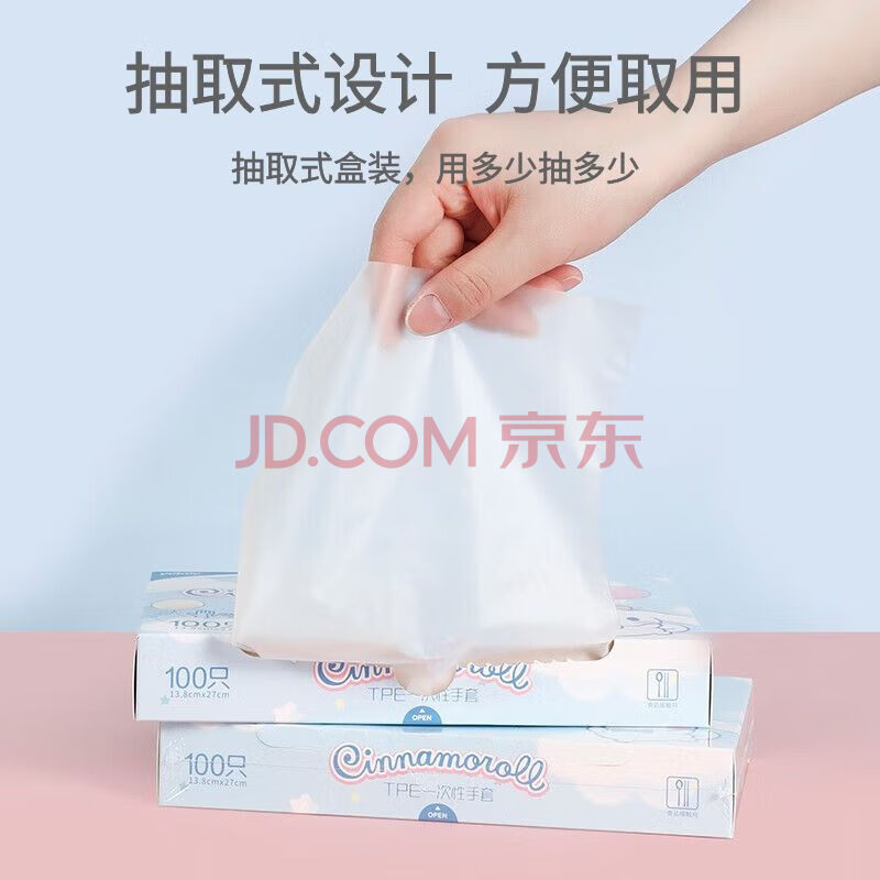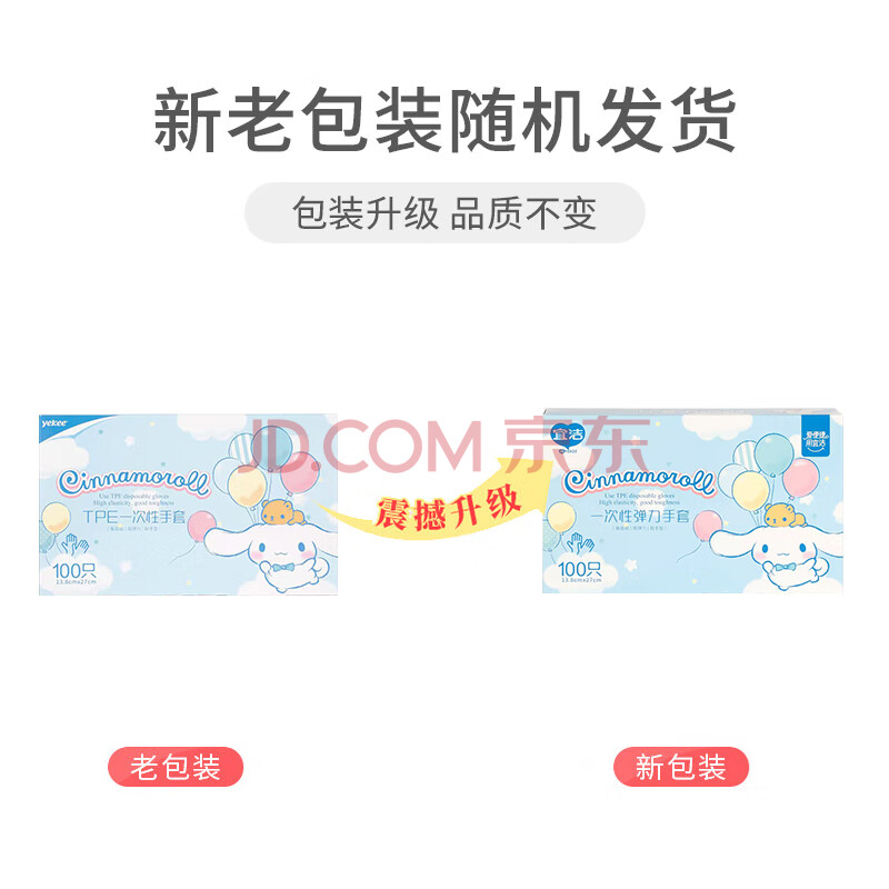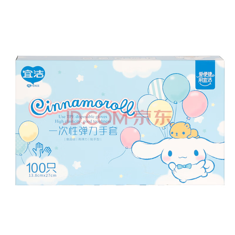 商品相册:宜洁(yekee)三丽鸥联名一次性TPE手套食品街大耳狗款家用加厚100只盒装K-8134第