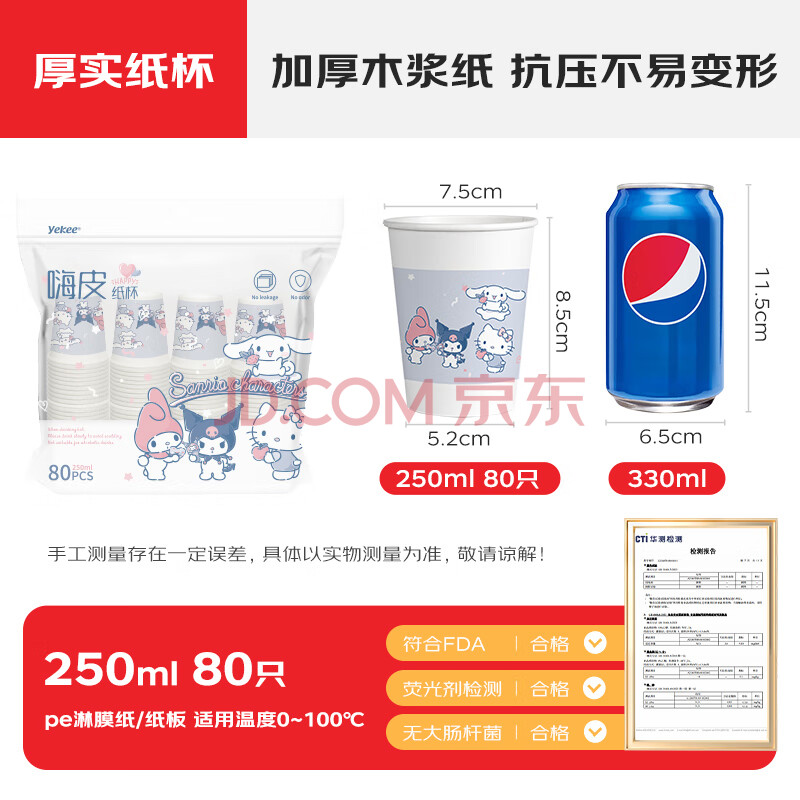 商品相册:宜洁(yekee)一次性纸杯子加厚商务咖啡杯家用一次性水杯茶杯250ml*80只K-8162第