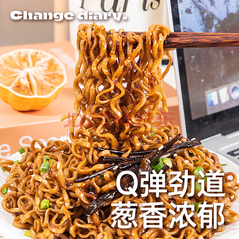 商品相册:小鸡收腹免煮葱油拌面0脂荞麦面带料包80g*20粗粮肥健身代餐减主食方便面第