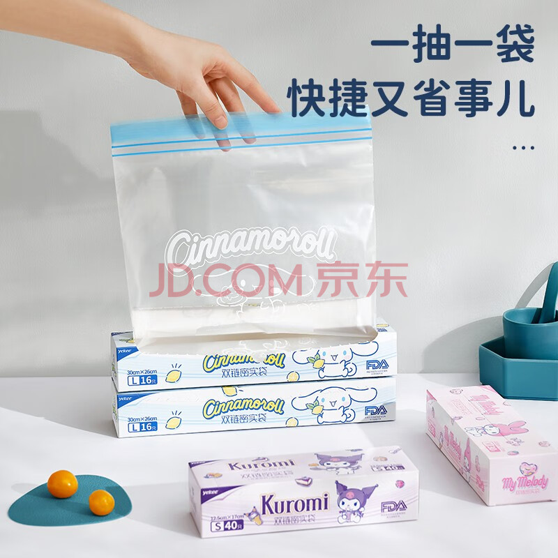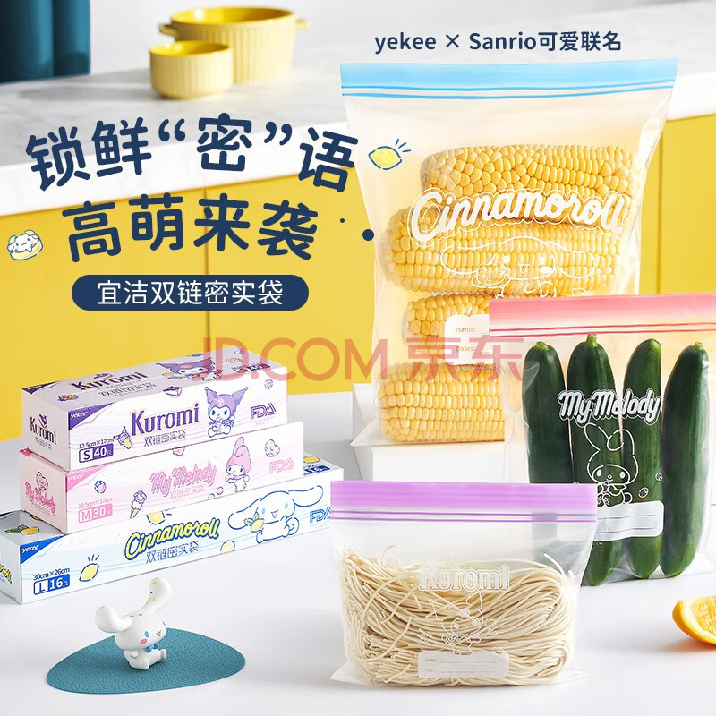 商品相册:宜洁(yekee)双链密封袋三丽鸥联名食品加厚保鲜盒装19.5*17cm 30只(中)K-8140第