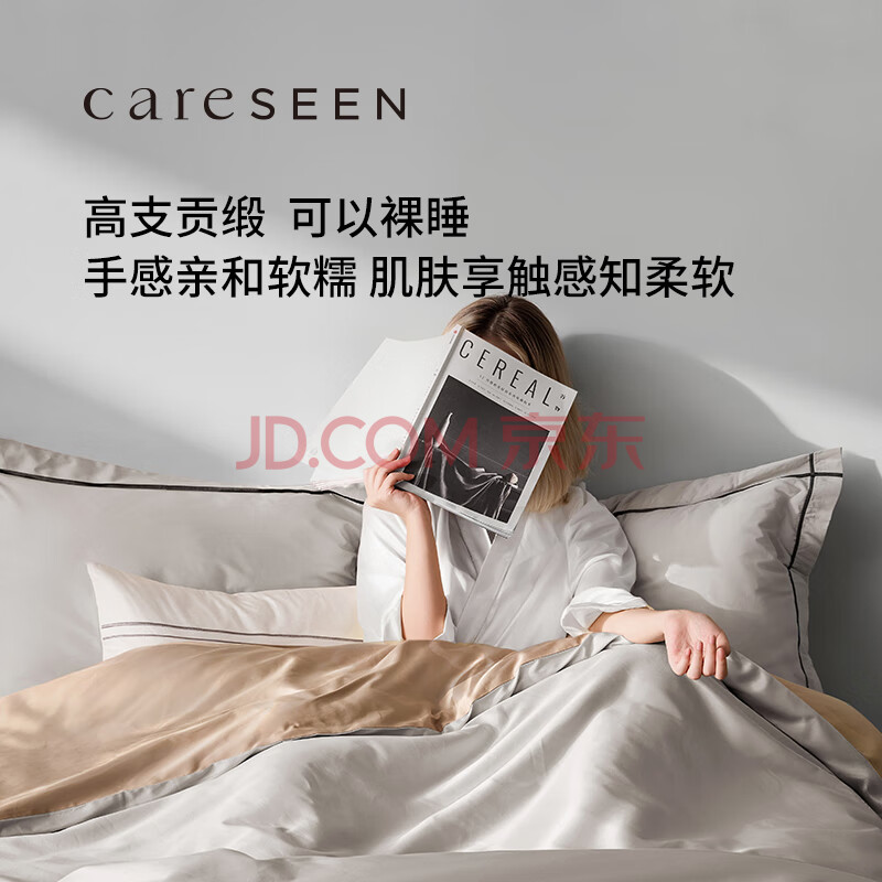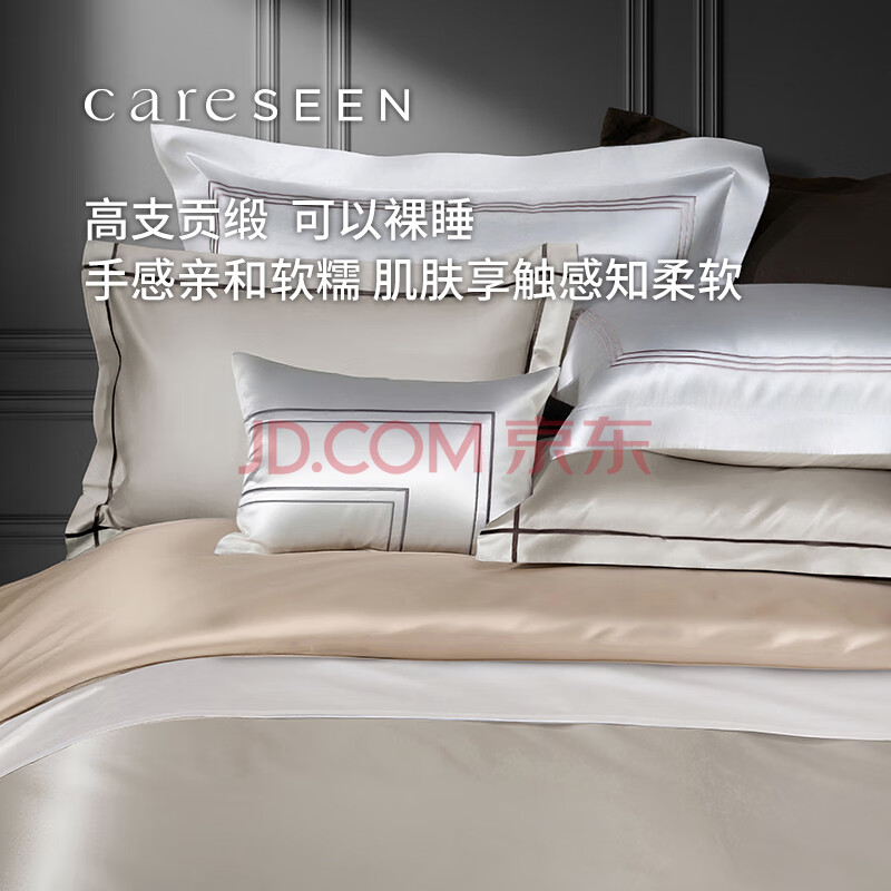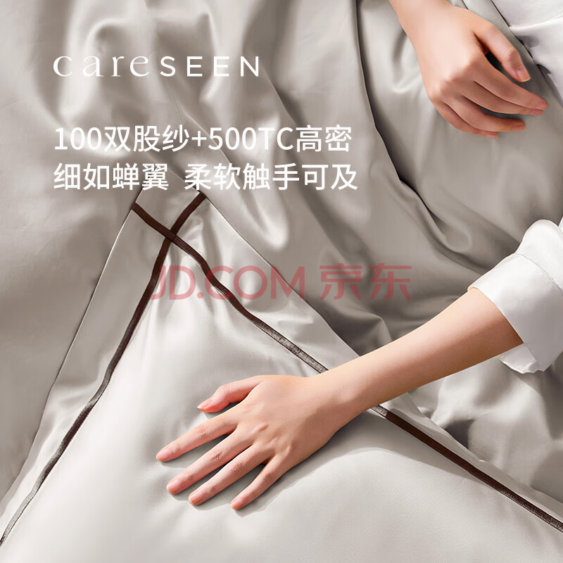 商品相册:康尔馨酒店家纺 100支四件套纯棉 贡缎套件床单被套枕套 灰色 1.5米床第