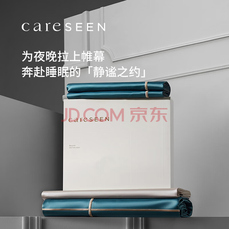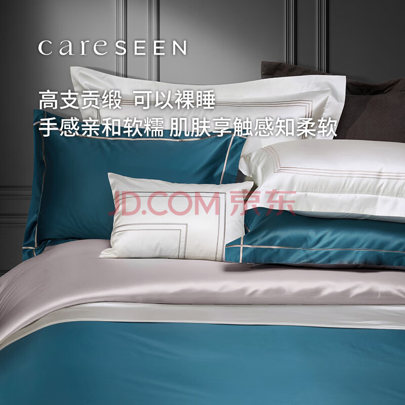 商品相册:康尔馨酒店家纺 100支四件套纯棉 贡缎套件床单被套枕套 蓝色 1.8米床第