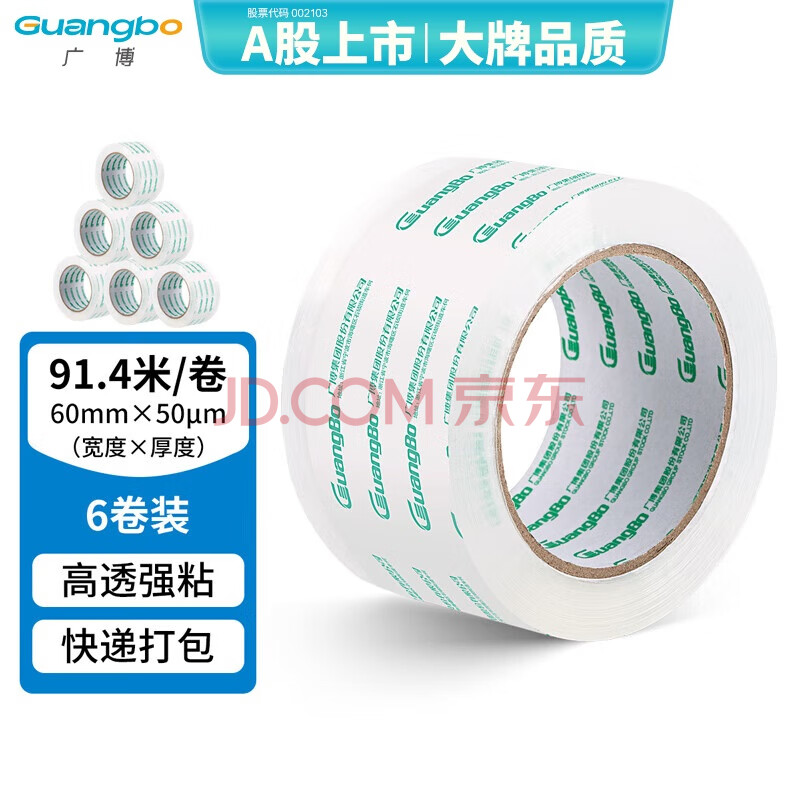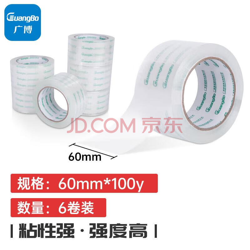 商品相册:广博防风高透明胶带宽胶带封箱胶带打包胶带封口胶大卷胶布 6卷装60mm*100y*50μm91.4米/卷FX-63第
