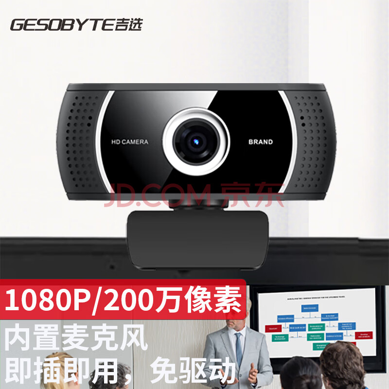 商品相册:吉选C302 1080P广角高清直播电脑摄像头视频通话会议网络教学家用考试考研笔记台式外接置USB免驱麦克第