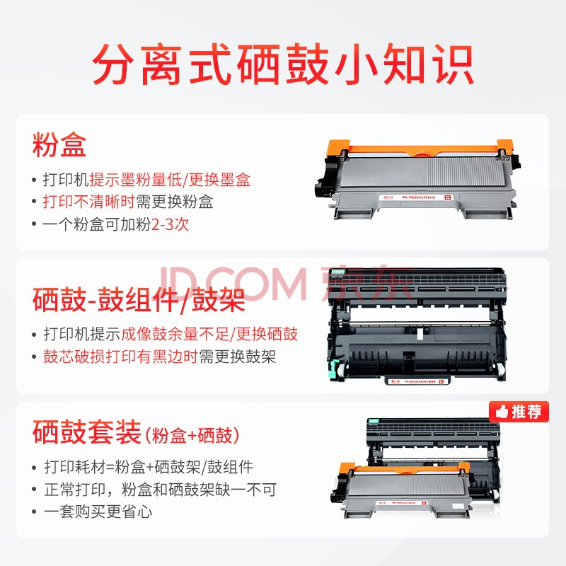 商品相册:天威LT2441/2641粉盒 适用联想lj2400 M7400硒鼓M7650DNF M7650DF 7860 墨粉盒TN2225 DCP7057 7470D第
