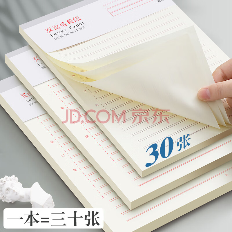 商品相册:嘉然恒 10本装16K双线信稿纸共300张 申请专用信稿纸 加厚笔记本子入党作文纸写信纸信笺草稿纸 39603第