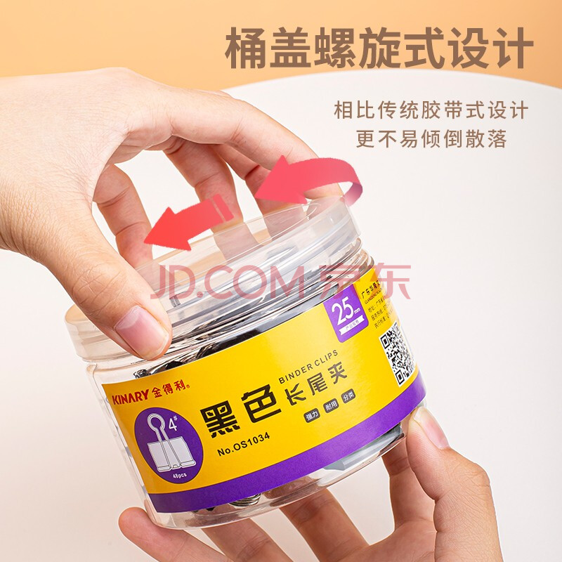 商品相册:金得利5#19mm黑色燕尾夹小夹子40只/桶装长尾夹金属票据夹防卷边文具文件夹蝴蝶夹鱼尾夹办公用品OS1035第
