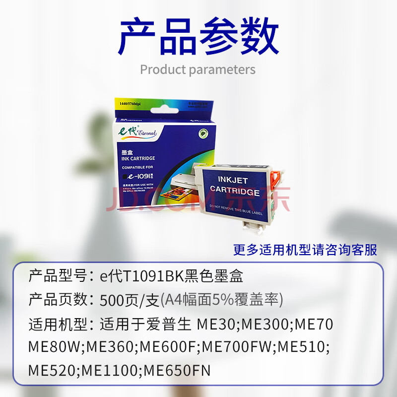 商品相册:e代 T1091BK黑色墨盒 适用爱普生ME30 ME300 ME360 ME70 ME510 ME520 ME1100墨水600F 650FN打印机墨盒第