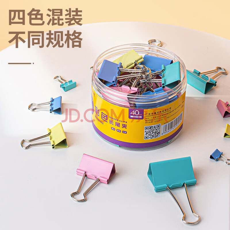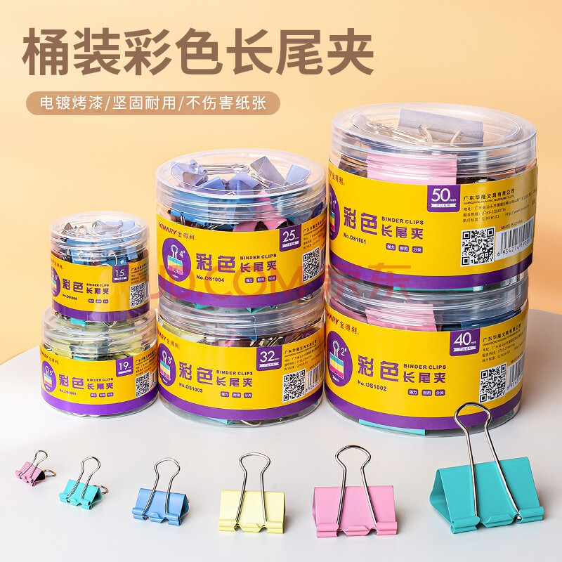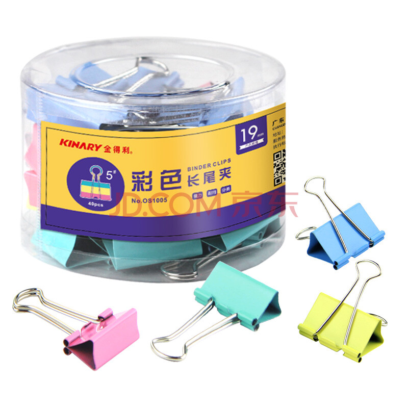 商品相册:金得利5#19mm彩色燕尾夹小夹子40只/桶装长尾夹金属票据夹防卷边文具文件夹蝴蝶夹鱼尾夹办公用品OS1005第