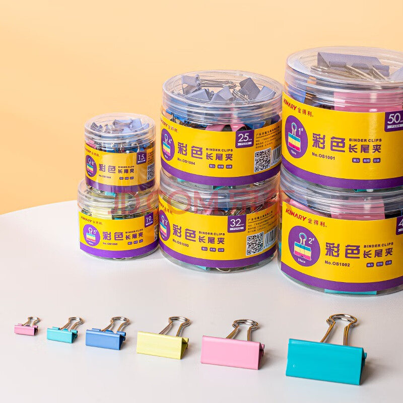 商品相册:金得利1#50mm彩色燕尾夹小夹子12只/桶装长尾夹金属票据夹防卷边文具文件夹蝴蝶夹鱼尾夹办公用品OS1001第