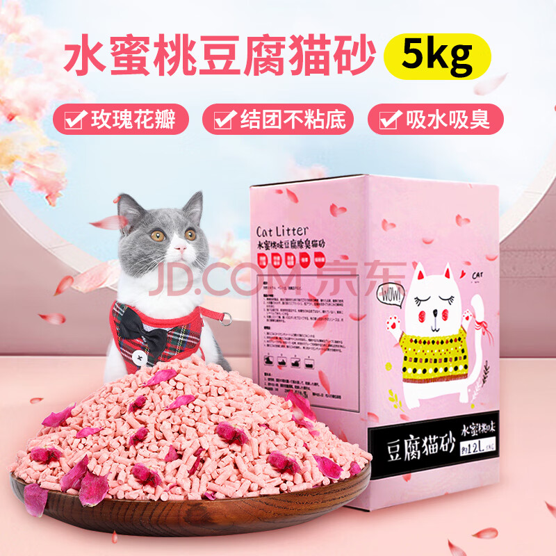 商品相册:狮子医生 猫砂10斤豆腐猫砂水蜜桃味祛味低尘可冲厕所带真玫瑰花瓣 5kg/袋第