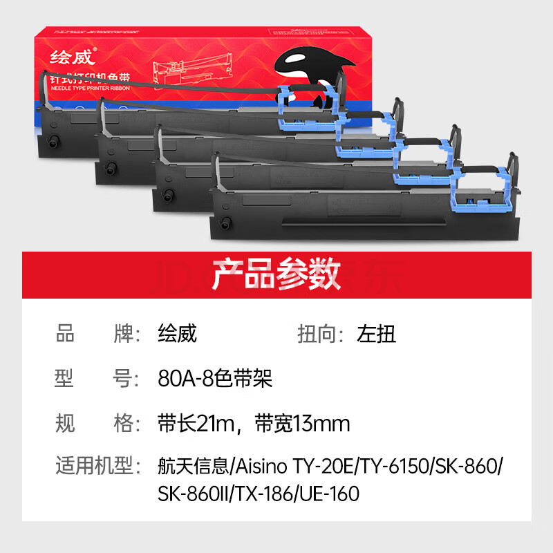 商品相册:绘威80A-8色带架 适用航天信息AisinoTY-6150 SK-860 SK-860II TX-186 UE-160针式打印机色带 4支装第