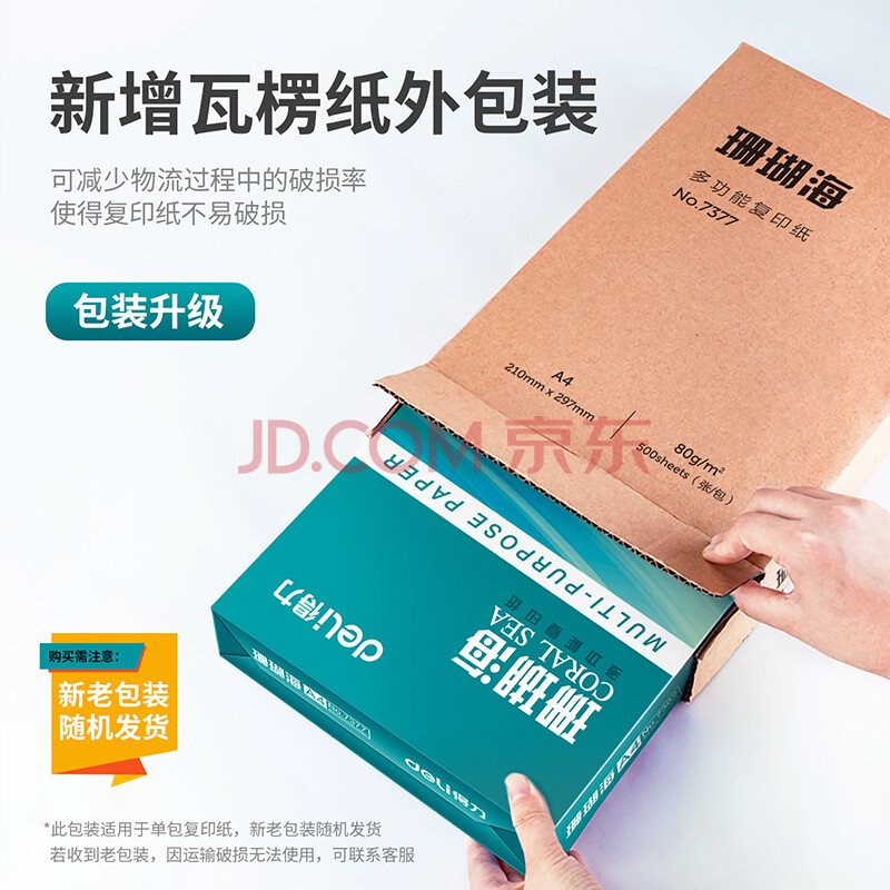 商品相册:得力(deli)珊瑚海A4打印纸80g500张 单包复印纸 双面加厚草稿纸 打印书写绘画 7377【销冠系列】第1张/共5