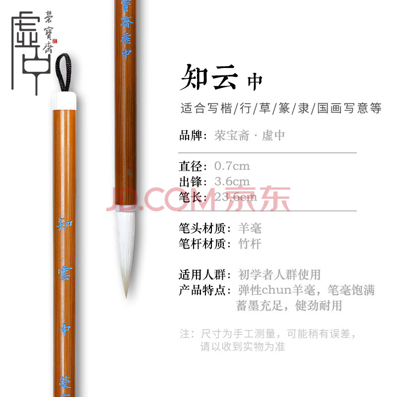 商品相册:荣宝斋【全网低价】 毛笔羊毫 善琏湖笔 文房四宝初学者成人学生篆隶行楷书法字帖碑帖练习笔 知云-中第
