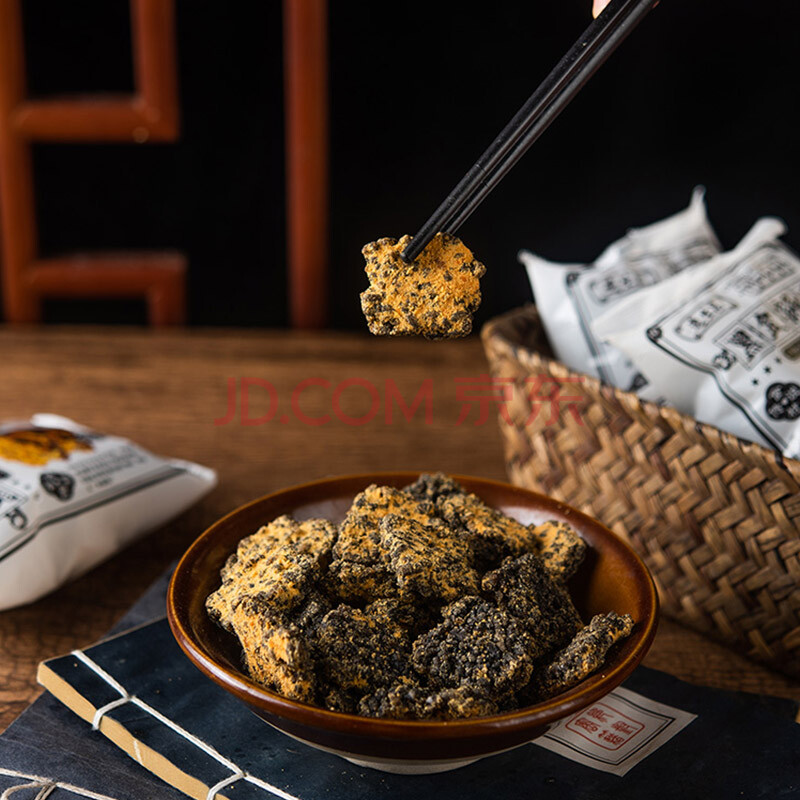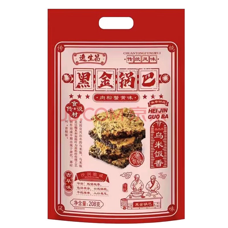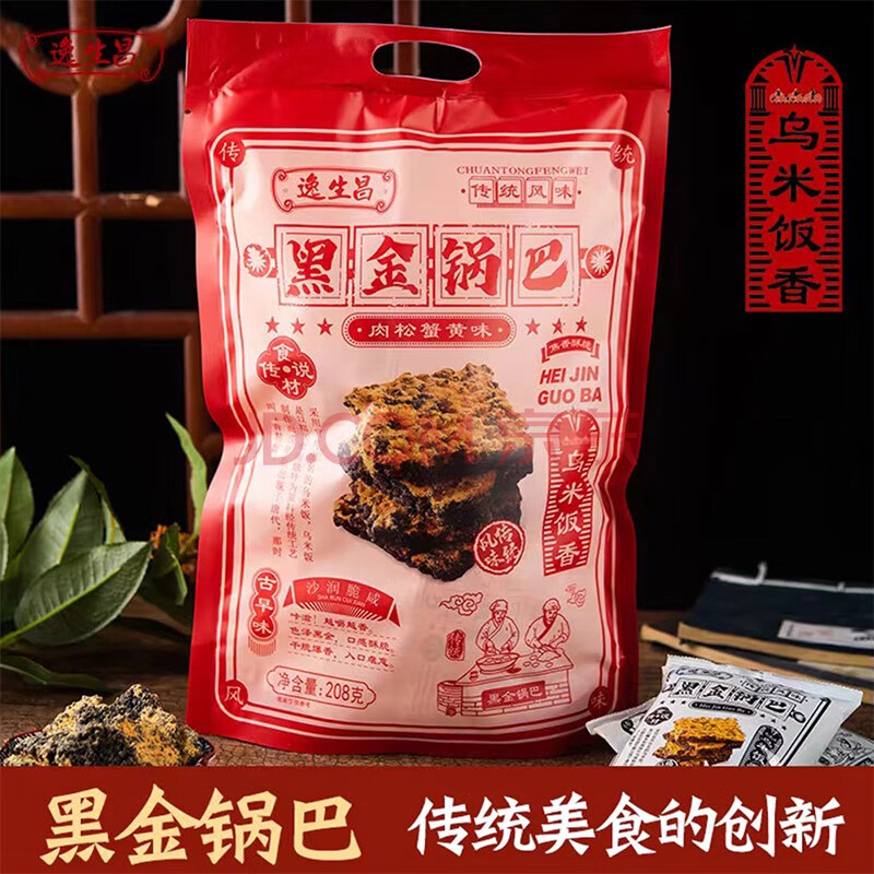 商品相册:逸生昌黑金锅巴肉松蟹黄味208g休闲追剧办公室零食传统黑米酥风味小吃 第