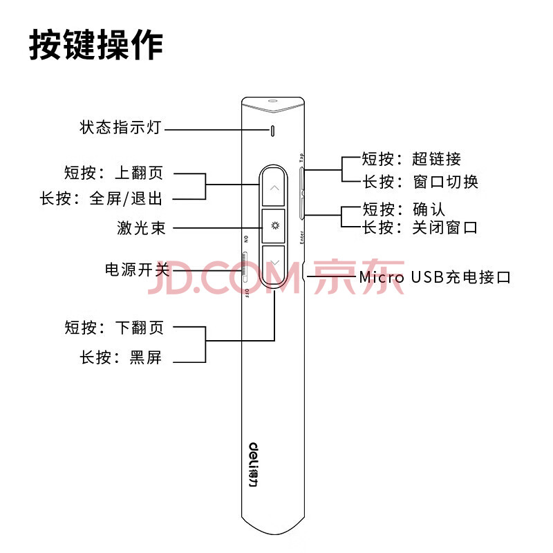 商品相册:得力 翻页笔激光笔充电多功能会议红外线100米超链切换*白杆*红光2801 1支装第