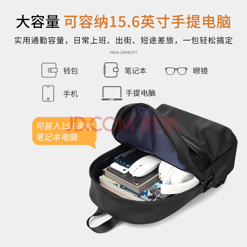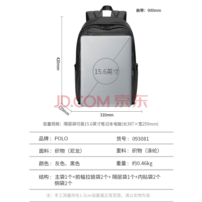 商品相册:POLO双肩包男士背包男电脑包14/15.6英寸大学生书包出差旅行笔记本第